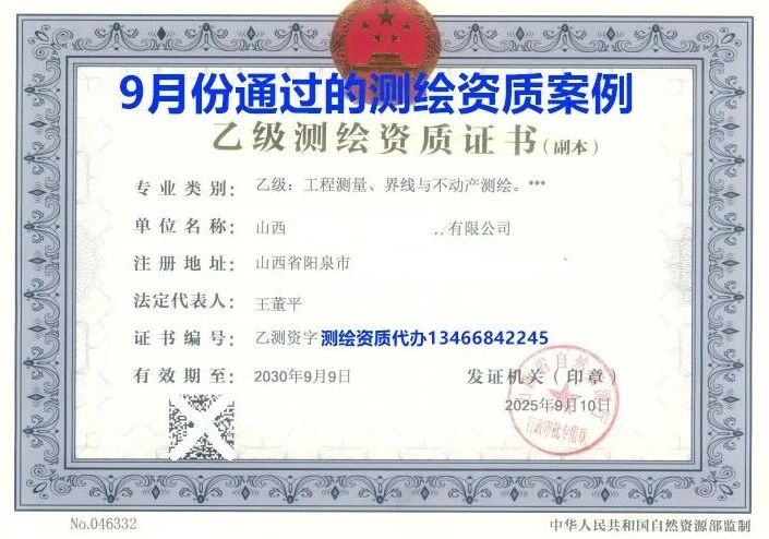 【2025年山西测绘乙级资质代办9月最快下证】工程测量+界线与不动产测绘资质包过方案,代办效率稳居行业前列!
